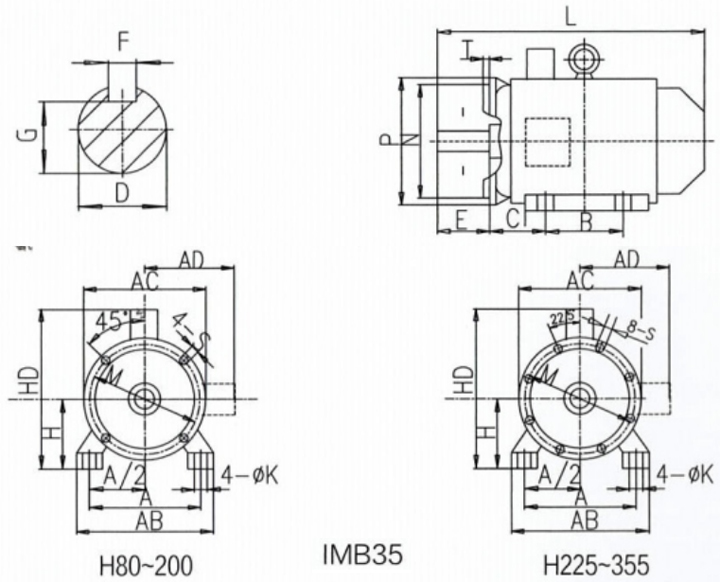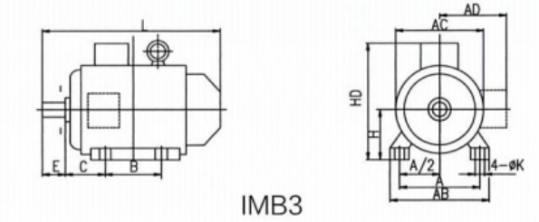YE4 系列變頻調(diào)速三相異步電動(dòng)機(jī)安裝及外形尺寸圖