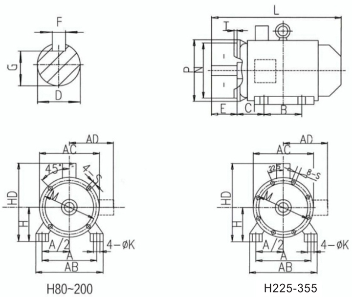 YE3系列三相異步電動(dòng)機(jī)安裝及外形尺寸圖